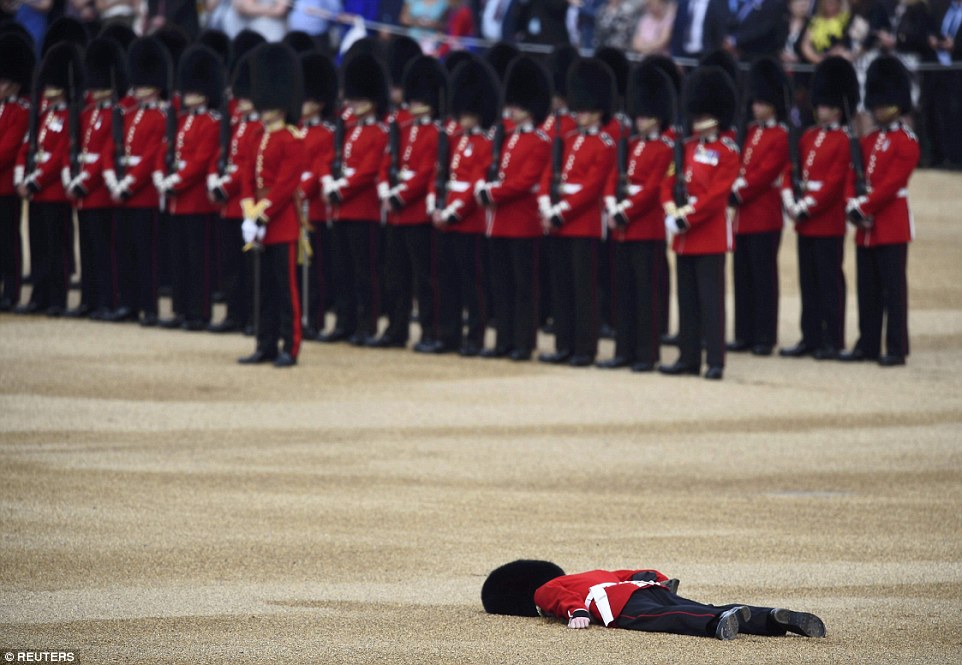 Ájult katona az angol királynő szülinapi